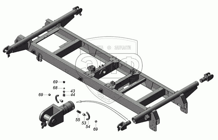 Каталог запасных частей к технике: Камский автозавод 45142. 45142-8601010 Надрамник