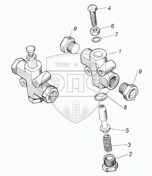 Каталог запасных частей к технике: Камский автозавод 53228, 65111. Клапан ограничительный