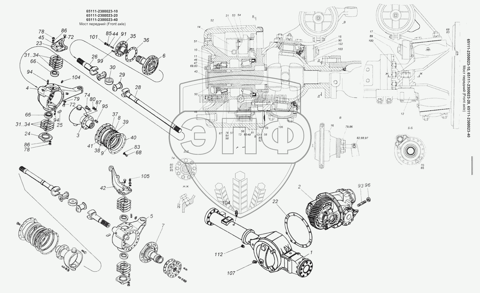 Каталог запасных частей к технике: Камский автозавод 53228, 65111. Мост передний
