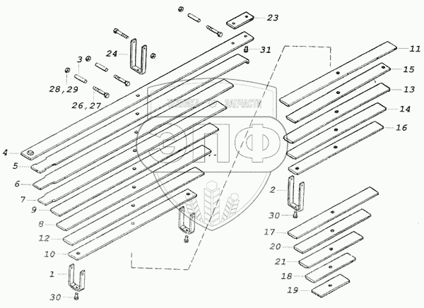 Каталог запасных частей к технике: Камский автозавод 53228, 65111. Рессора передняя