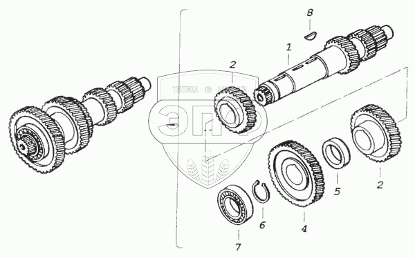| 5 | 14.1701062 | Втулка распорная зубчатых колес 4-й передачи и привода промежуточного вала | Нет на складе | |