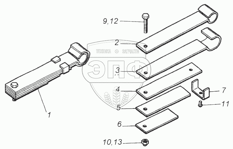 Каталог запасных частей к технике: Камский автозавод 5360. Рессора кабины