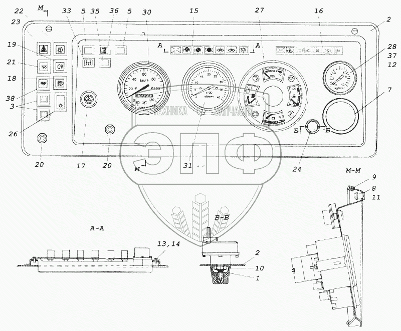 Каталог запасных частей к технике: Камский автозавод 5360. Щиток приборов