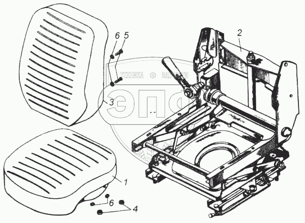 Каталог запасных частей к технике: Камский автозавод 5360. Сиденье водителя