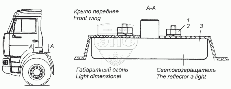Каталог запасных частей к технике: Камский автозавод 5360. Установка габаритных боковых фонарей