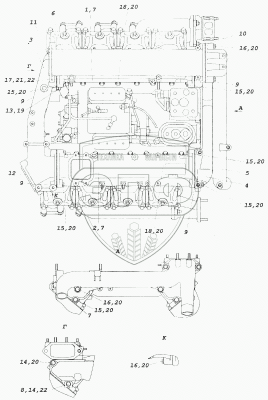 Каталог запасных частей к технике: Камский автозавод 5360. Установка системы впуска