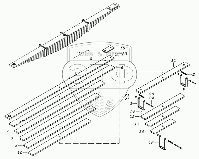 Каталог запасных частей к технике: Камский автозавод 5460. Рессора задняя