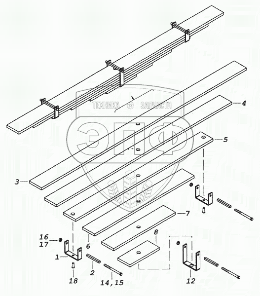 Каталог запасных частей к технике: Камский автозавод 5460. Рессора задняя дополнительная