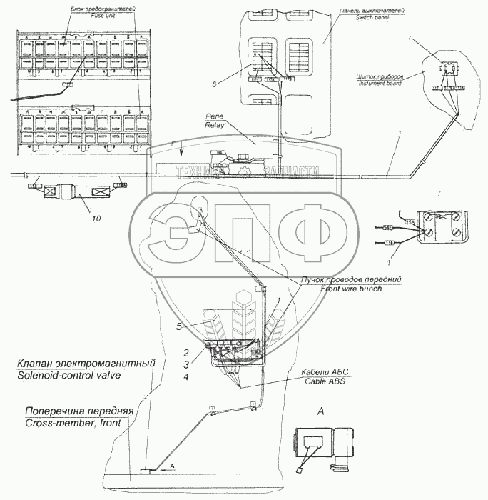 Каталог запасных частей к технике: Камский автозавод 5460. Установка электрооборудования АБС