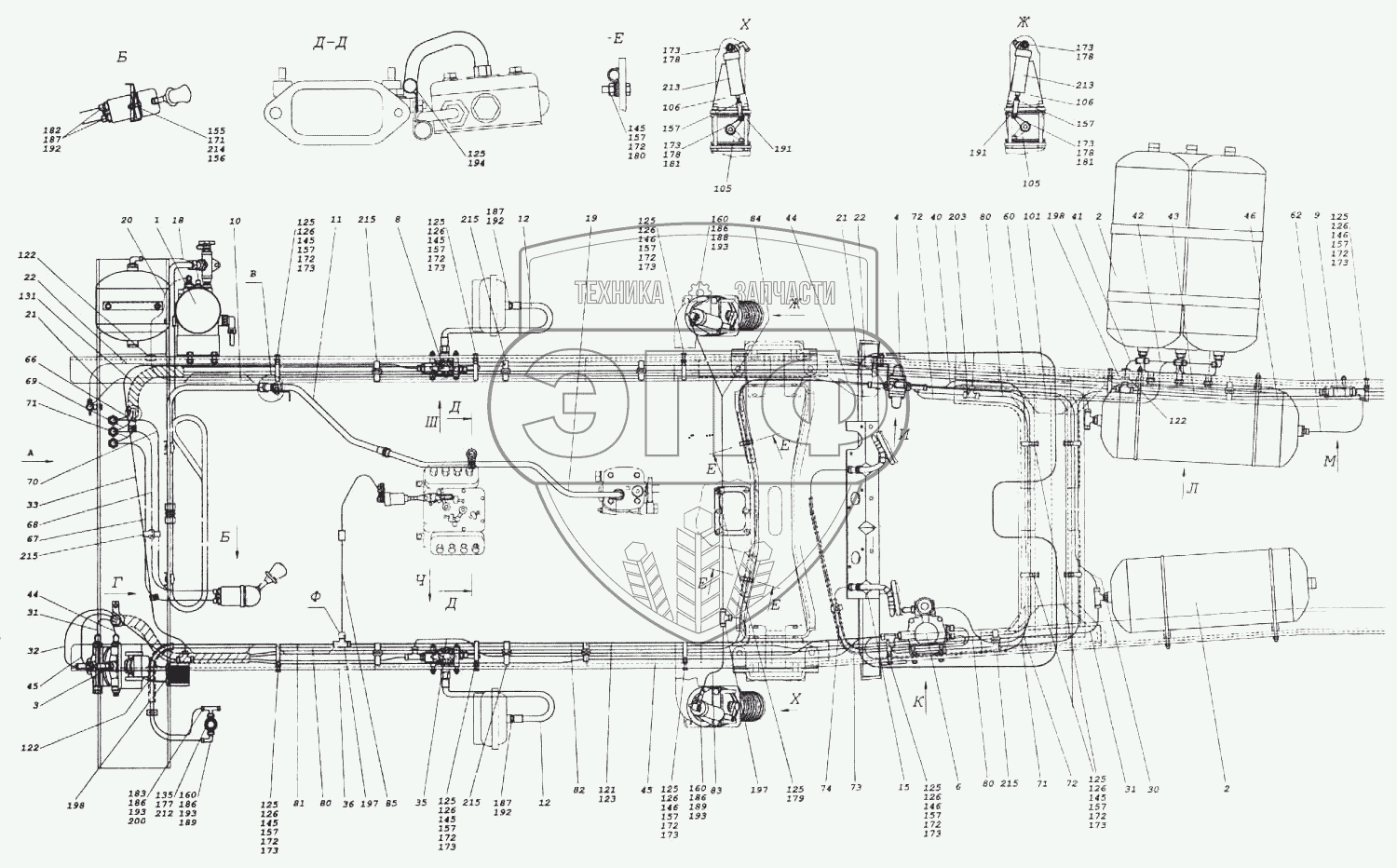 Каталог запасных частей к технике: Камский автозавод 5460. Установка пневмотормозов
