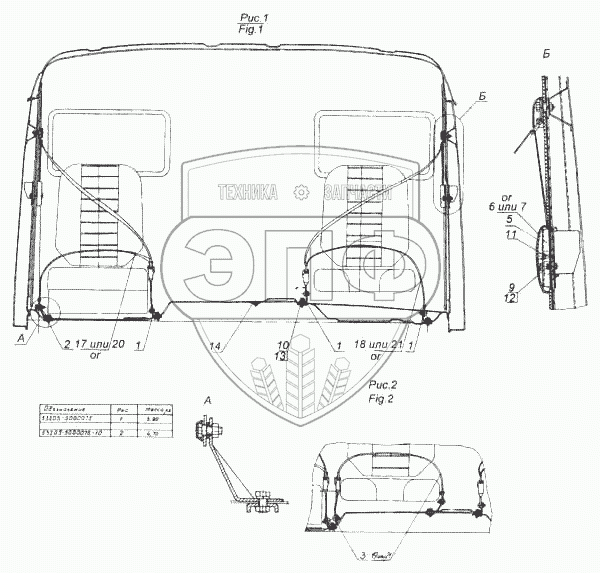 Каталог запасных частей к технике: Камский автозавод 5460. Установка ремней безопасности