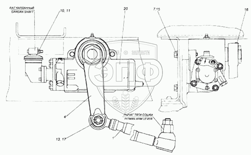 Каталог запасных частей к технике: Камский автозавод 5460. Установка рулевого механизма