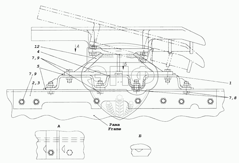 Каталог запасных частей к технике: Камский автозавод 5460. Установка седельно-сцепного устройства