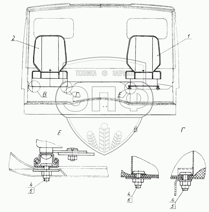 Каталог запасных частей к технике: Камский автозавод 5460. Установка сидений