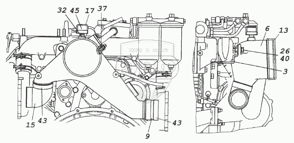Каталог запасных частей к технике: Камский автозавод 5460. Установка тройника