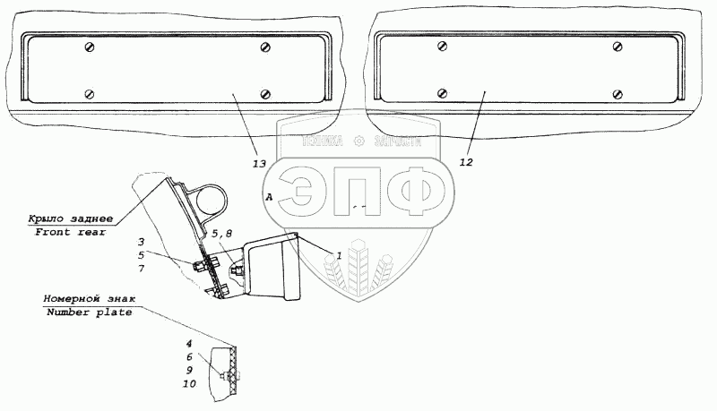 Каталог запасных частей к технике: Камский автозавод 5460. Установка задних фонарей