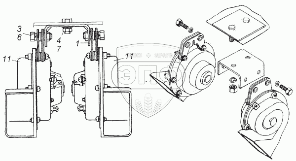 Каталог запасных частей к технике: Камский автозавод 5460. Установка звуковых электрических сигналов