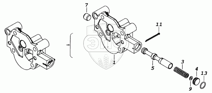 Каталог запасных частей к технике: Камский автозавод 5460. Крышка масляного насоса с клапаном