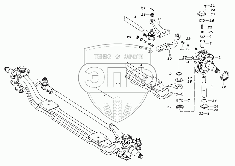 Каталог запасных частей к технике: Камский автозавод 5460. Ось передняя