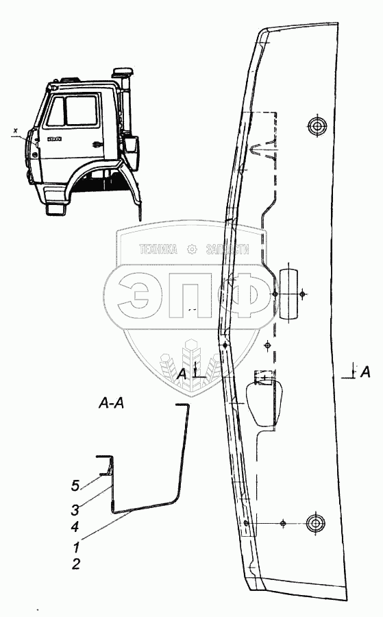 Каталог запасных частей к технике: Камский автозавод 5460. Панель передка съемная боковая
