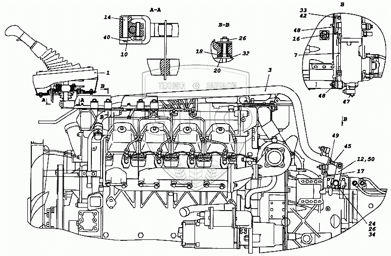 Каталог запасных частей к технике: Камский автозавод 5460. Привод управления механизмом переключения передач