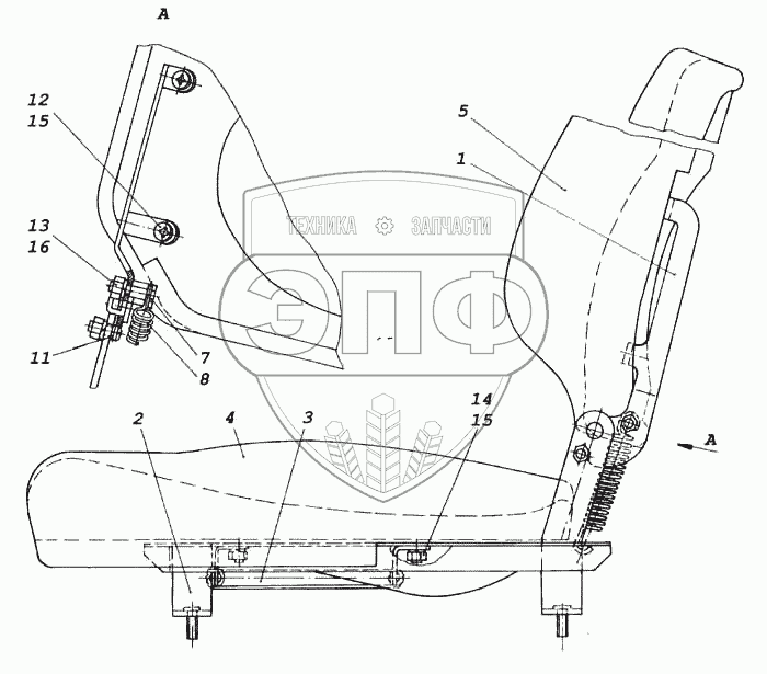 Каталог запасных частей к технике: Камский автозавод 5460. Сиденье пассажирское