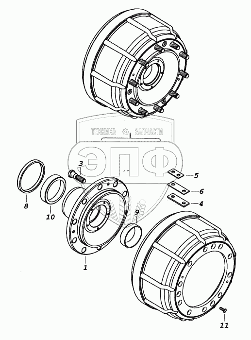 Каталог запасных частей к технике: Камский автозавод 5460. Ступица с тормозным барабаном