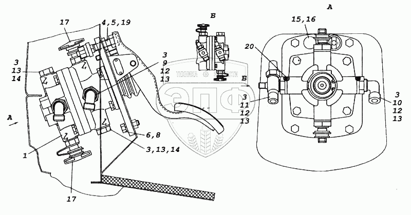 Каталог запасных частей к технике: Камский автозавод 5460. Установка двухсекционного тормозного крана