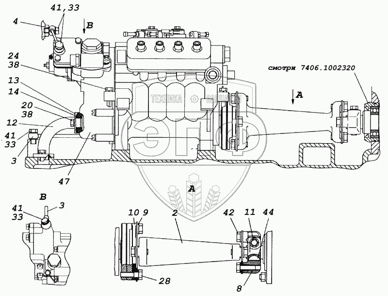 Каталог запасных частей к технике: Камский автозавод 5460. Установка и привод ТНВД