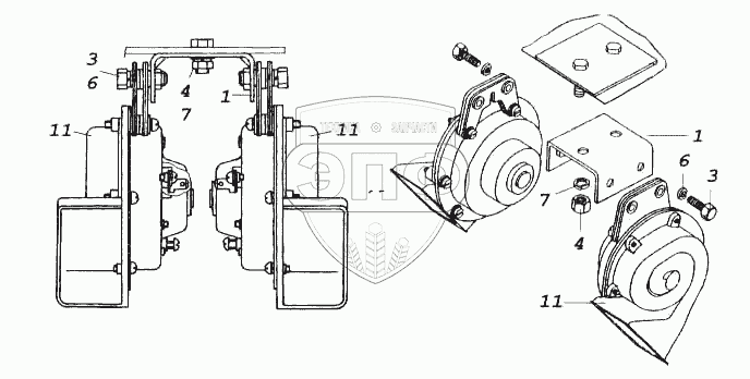Каталог запасных частей к технике: Камский автозавод 5460. Установка звуковых электрических сигналов