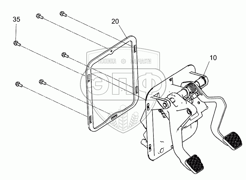 Каталог запасных частей к технике: Камский автозавод 5490. 0000-3514005 Блок педалей