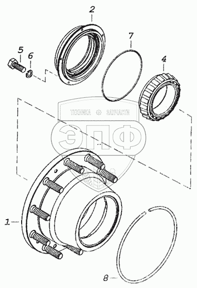 Каталог запасных частей к технике: Камский автозавод 6460. Ступица заднего колеса с манжетами