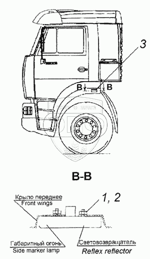 Каталог запасных частей к технике: Камский автозавод 6460. Установка габаритных боковых фонарей