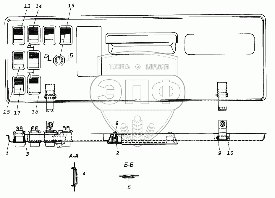 Каталог запасных частей к технике: Камский автозавод 65116. Панель выключателей