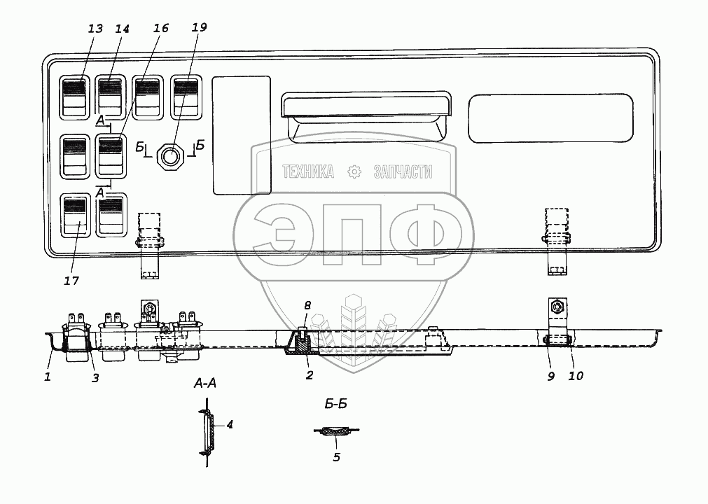 Каталог запасных частей к технике: Камский автозавод 65116. Панель выключателей