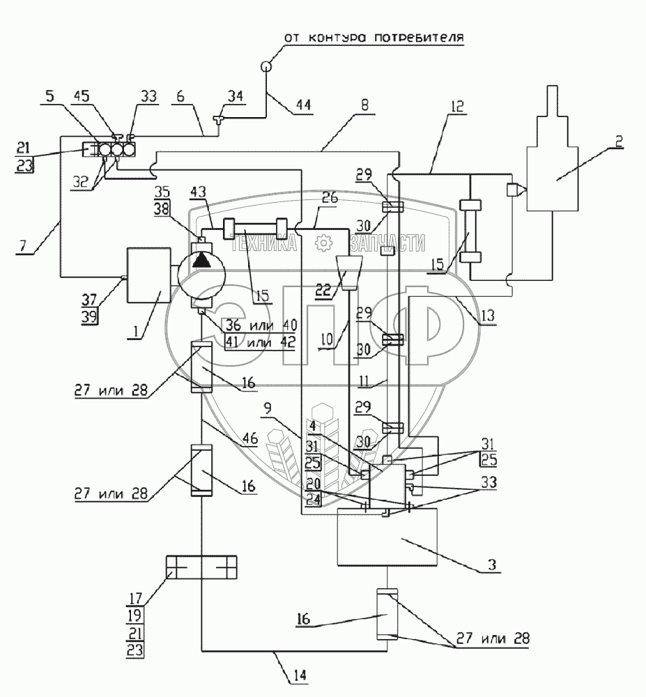 Каталог запасных частей к технике: Камский автозавод 65201. Гидросхема - 1