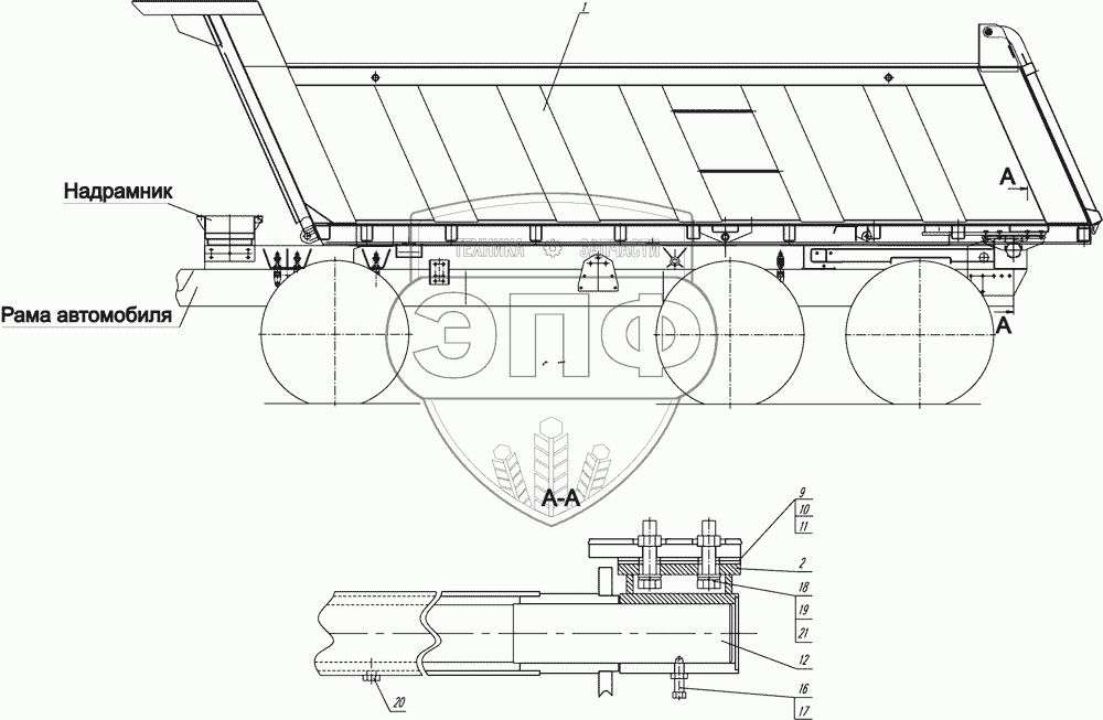 Каталог запасных частей к технике: Камский автозавод 65201. Установка платформы