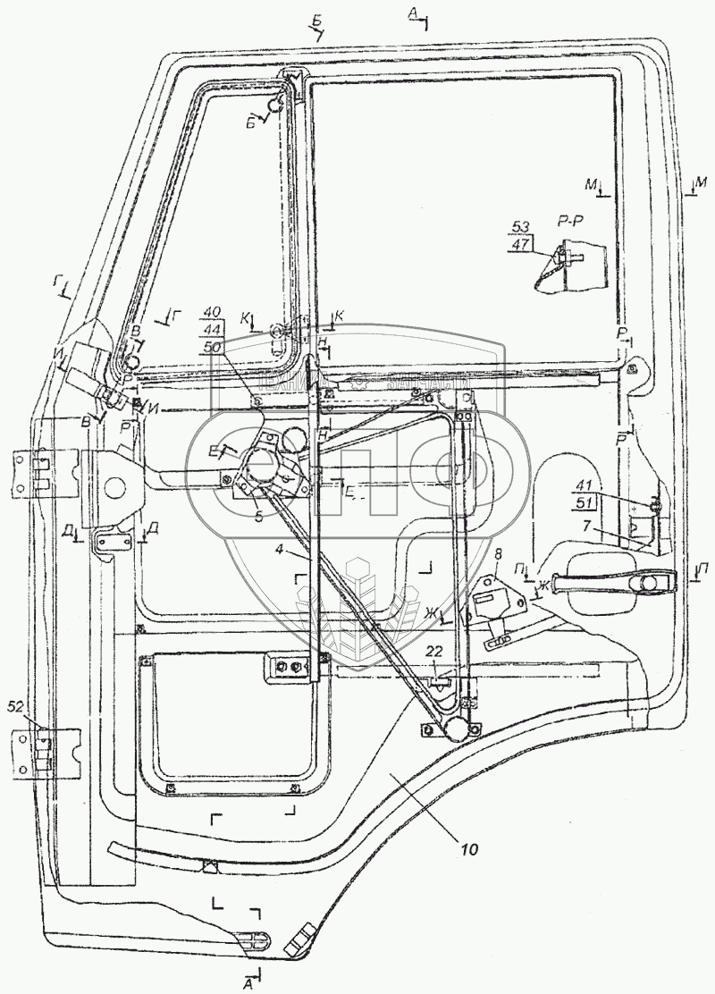 Каталог запасных частей к технике: Камский автозавод 6520. Дверь