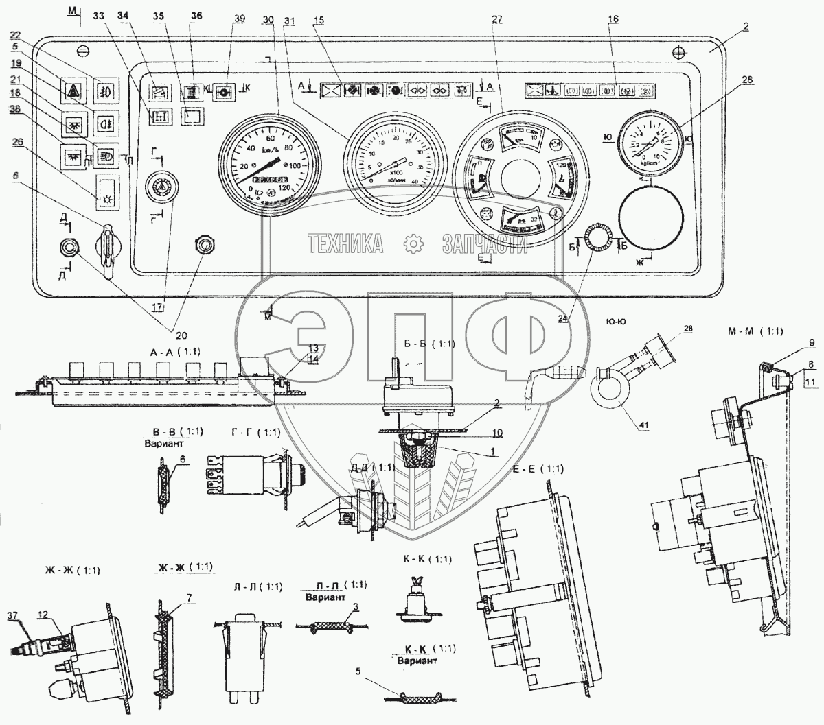Каталог запасных частей к технике: Камский автозавод 6520. Щиток приборов