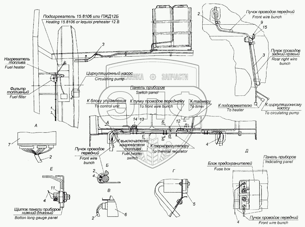 | 2 | 53215-3741010 | Пучок проводов подогревателя кабины | Нет на складе | |