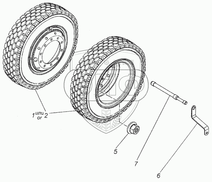 Каталог запасных частей к технике: Камский автозавод 6520. Установка сдвоенных колес