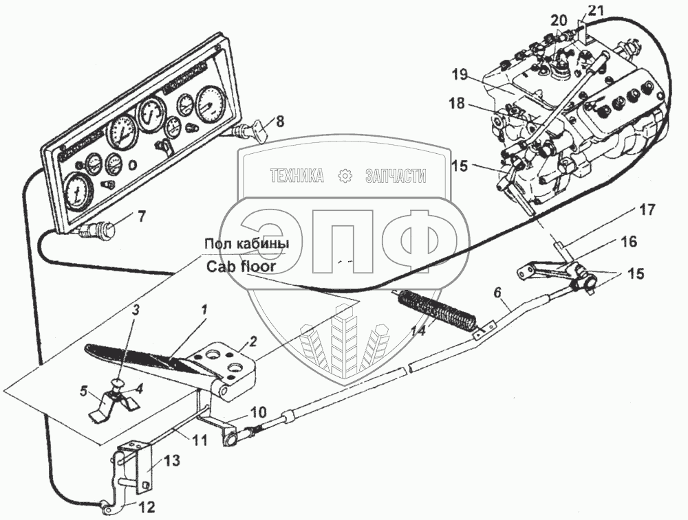 Каталог запасных частей к технике: Камский автозавод 6520. Установка управления подачи топлива