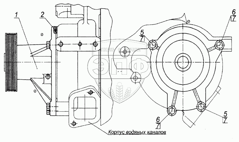 Каталог запасных частей к технике: Камский автозавод 6520. Установка водяного насоса