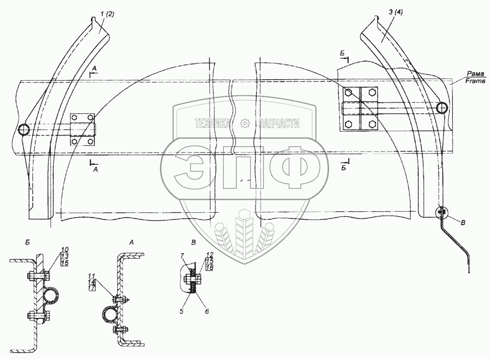 Каталог запасных частей к технике: Камский автозавод 6520. Установка задних крыльев