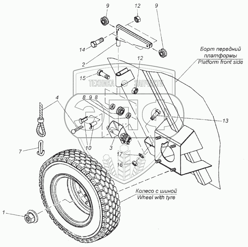 Каталог запасных частей к технике: Камский автозавод 6520. Установка запасного колеса