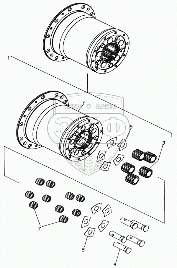 Каталог запасных частей к технике: Камский автозавод 6520. Водило с кожухом и сателлитами