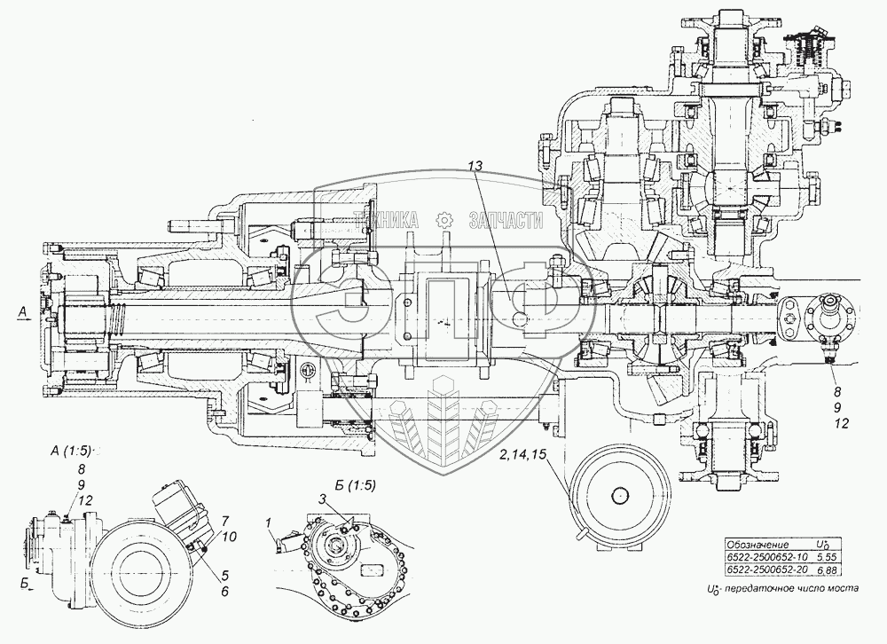 Каталог запасных частей к технике: Камский автозавод 65226. 6522-2500652-10 Мост средний