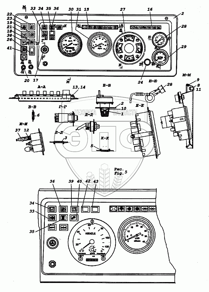 Каталог запасных частей к технике: Камский автозавод 65226. Щиток приборов