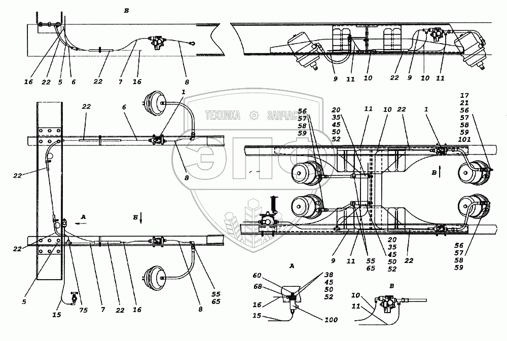 Каталог запасных частей к технике: Камский автозавод 65226. Установка пневмоуправления системой АБС