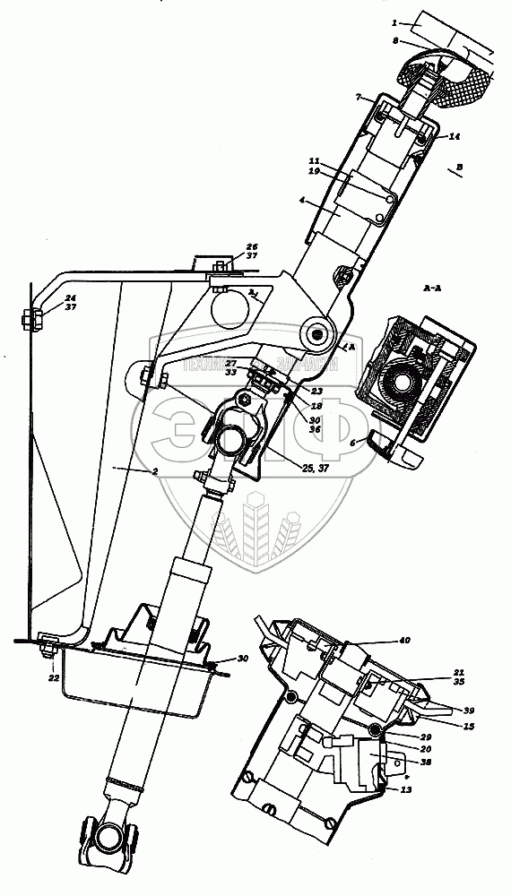 Каталог запасных частей к технике: Камский автозавод 65226. Установка рулевой колонки